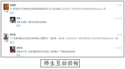 系主任羅艷老師進行了回帖指導和答疑,基礎化學部副系主任黃焰根老師也對同學回帖留言,形成了師生間的良好互動。