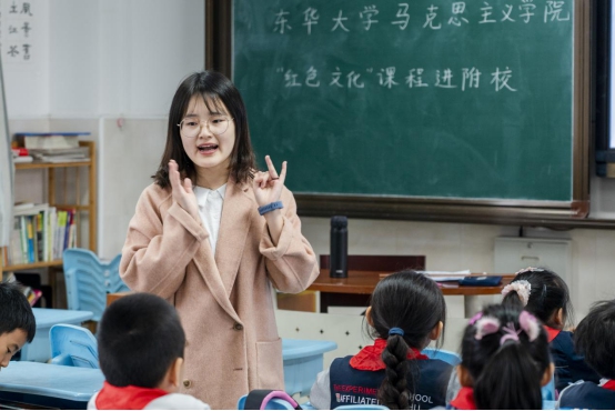 11月18日,來自我校馬克思主義學院的9名研究生來到東華大學附屬實驗學校三年級的實體課堂,為小學生們帶來“紅色文化”思政選修課第一講。