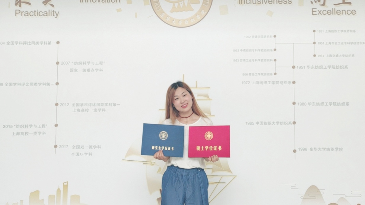 黃姝婷是一名北方女孩兒,2013年考入東華大學紡織學院。從那時起她就和紡織材料結下了不解之緣,四年本科和三年研究生的學習,為她打下了堅實的專業基礎,也給她烙下了東華紡織的印記。