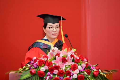 教師代表、人文學(xué)院院長張科靜為圓滿完成學(xué)業(yè),即將開啟人生新征程的畢業(yè)生們送上了暖心祝福。她鼓勵(lì)同學(xué)們要善于在學(xué)習(xí)中緊跟時(shí)代步伐,努力保持學(xué)習(xí)的習(xí)慣,不斷更新知識、增長技能;勇于在逆境中歷練自我,傳承東華人迎難而上的勇氣和擔(dān)當(dāng),在磨礪中奮起,把逆境當(dāng)成歷練自我的寶貴財(cái)富,把自身價(jià)值與祖國發(fā)展聯(lián)系在一起;樂于在繁忙中擁抱生活,隨時(shí)給自己加油打氣,定會擁有詩和遠(yuǎn)方。她說,“東華永遠(yuǎn)是你們的精神家園,歡迎隨時(shí)回家。”