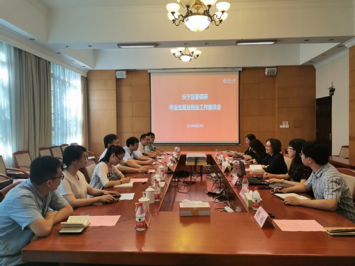 8月19日,長寧區委副書記陳華文一行到我校調研大學生就業創業工作。黨委副書記劉淑慧出席調研活動。長寧區人社局、區委組織部、公務員局等相關部門負責人及我校學生就業服務中心、產業聯合黨總支等相關部門負責人與會。學生就業服務中心主任嚴軍主持會議。