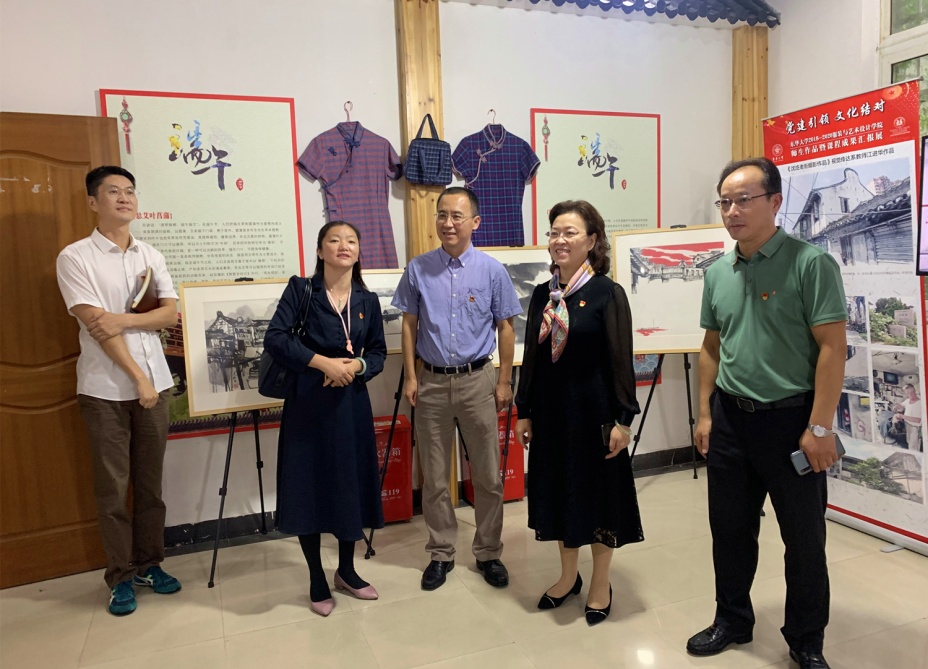 服裝與藝術(shù)設(shè)計(jì)學(xué)院藝術(shù)二黨支部書記胡杰明、下沙社區(qū)黨委副書記嚴(yán)斌、沈莊村黨總支書記談林華作交流發(fā)言。雙方領(lǐng)導(dǎo)共同為“東華大學(xué)黨建聯(lián)建暨黨員干部教育培訓(xùn)基地”“東華大學(xué)浦東藝術(shù)創(chuàng)作創(chuàng)新基地”揭牌。我校一行還參觀了“黨建引領(lǐng) 文化結(jié)對(duì)——東華大學(xué)2018-2020服院師生作品暨課程成果匯報(bào)展”和方孝孺紀(jì)念館、沈莊村村史館。
