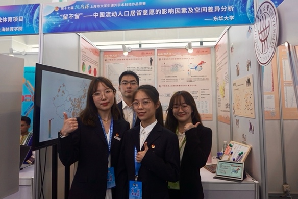 管理學院的“‘留不留’——中國流動人口居留意愿的影響因素及空間差異分析”項目獲得上海市一等獎。團隊通過對2016年全國流動人口動態監測調查數據的詳盡分析,得出了我國居留意愿空間分布東西方向U型分布,南北方向上北高南低的結論,作品在與通常認知有出入的同時為流動人口的分析提供了全新的切入角度,能夠為提升城市管理水平以及提出流動人口市民化相關政策做出指導建議,從而促進不同地區間資源的合理分配,進一步加快我國城市化進程。