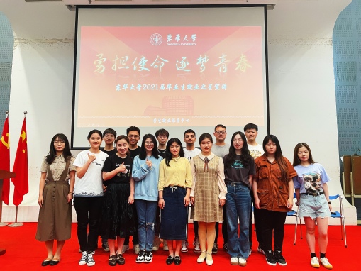 5月25日,2021屆畢業生就業之星宣講活動在松江校區舉行,來自14個學院的16位就業之星代表以“勇擔使命 逐夢青春”為主題展開宣講。學生就業服務中心主任嚴軍、團委副書記邵楠出席活動,各學院學生代表參加本次宣講活動。