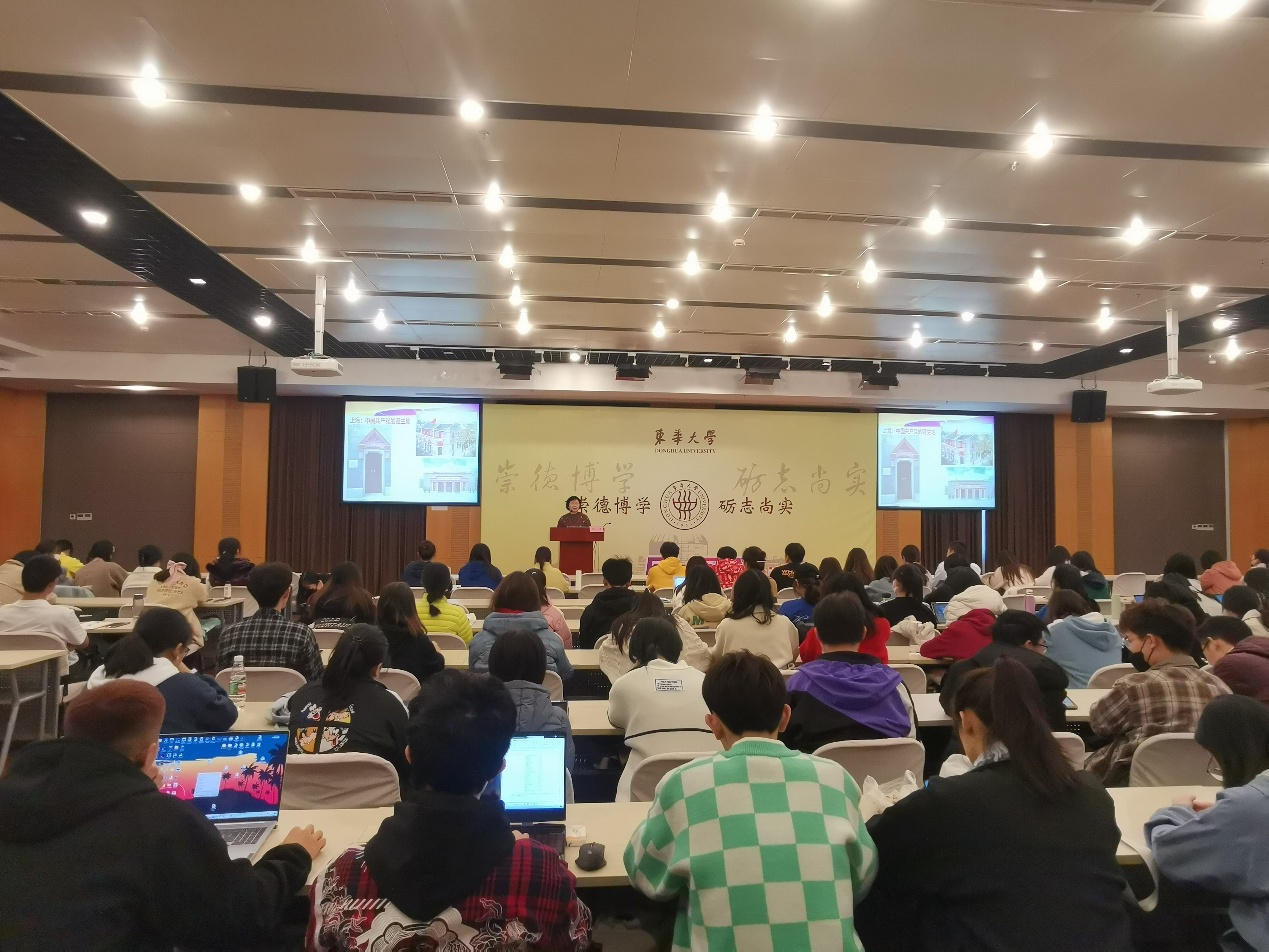 李瑊還結(jié)合青年視角,講述百年前為黑暗腐朽的舊中國苦苦求索出路的青年“覺醒者”的故事,闡述他們確立及追尋馬克思主義信仰的艱辛和無畏的探索。回望百年黨史中青春力量匯聚的時(shí)代洪流,從一個(gè)個(gè)青年人的時(shí)代選擇講述偉大建黨精神,通過生動(dòng)案例和豐富的黨史素材,講述“覺醒年代”青年們“堅(jiān)持真理、堅(jiān)守理想,踐行初心、擔(dān)當(dāng)使命,不怕犧牲、英勇斗爭,對(duì)黨忠誠、不負(fù)人民”的奮斗歷程。她還引導(dǎo)學(xué)生思考新時(shí)代的青春選擇,無論是卓立雪域高原的邊防官兵,還是逆行武漢抗擊疫情的白衣戰(zhàn)士、扎根基層助力脫貧攻堅(jiān)及鄉(xiāng)村振興的青年,青春的力量沒有褪色,依舊生機(jī)蓬勃。在講座的最后,李瑊寄語東華青年不忘初心、牢記使命,深刻感悟并積極踐行偉大建黨精神,激勵(lì)當(dāng)代大學(xué)生著眼中國美好的未來,開啟新征程上的新奮斗。