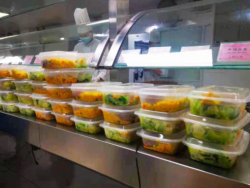 “真的很感謝學校,今天中午有最愛吃的雞腿。”一位同學的朋友圈中曬出了今天的午餐,雞腿、辣子雞、炒包菜以及一份米飯。每到飯點,同學們的朋友圈就化身為大型“拆盲盒”現場,昨天你收到的是土豆雞塊、紅燒肉,今天我收到的是雞腿、四喜丸子。在同學們“拆盲盒”的背后,是全體餐飲人連續的堅守,是他們成倍增長的工作量以及晝夜顛倒的作息時間。“沒事,為了同學們,一切都值得!”